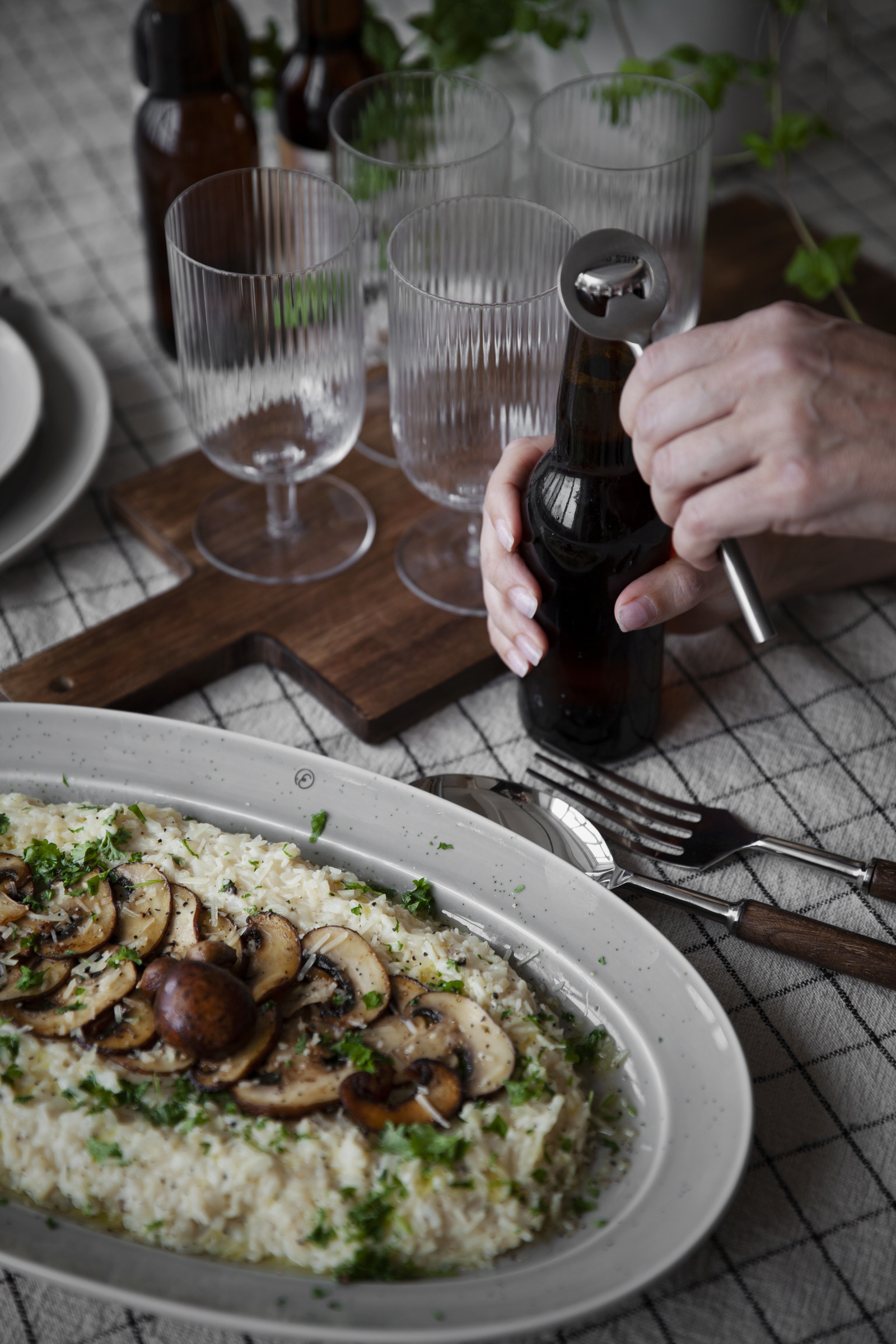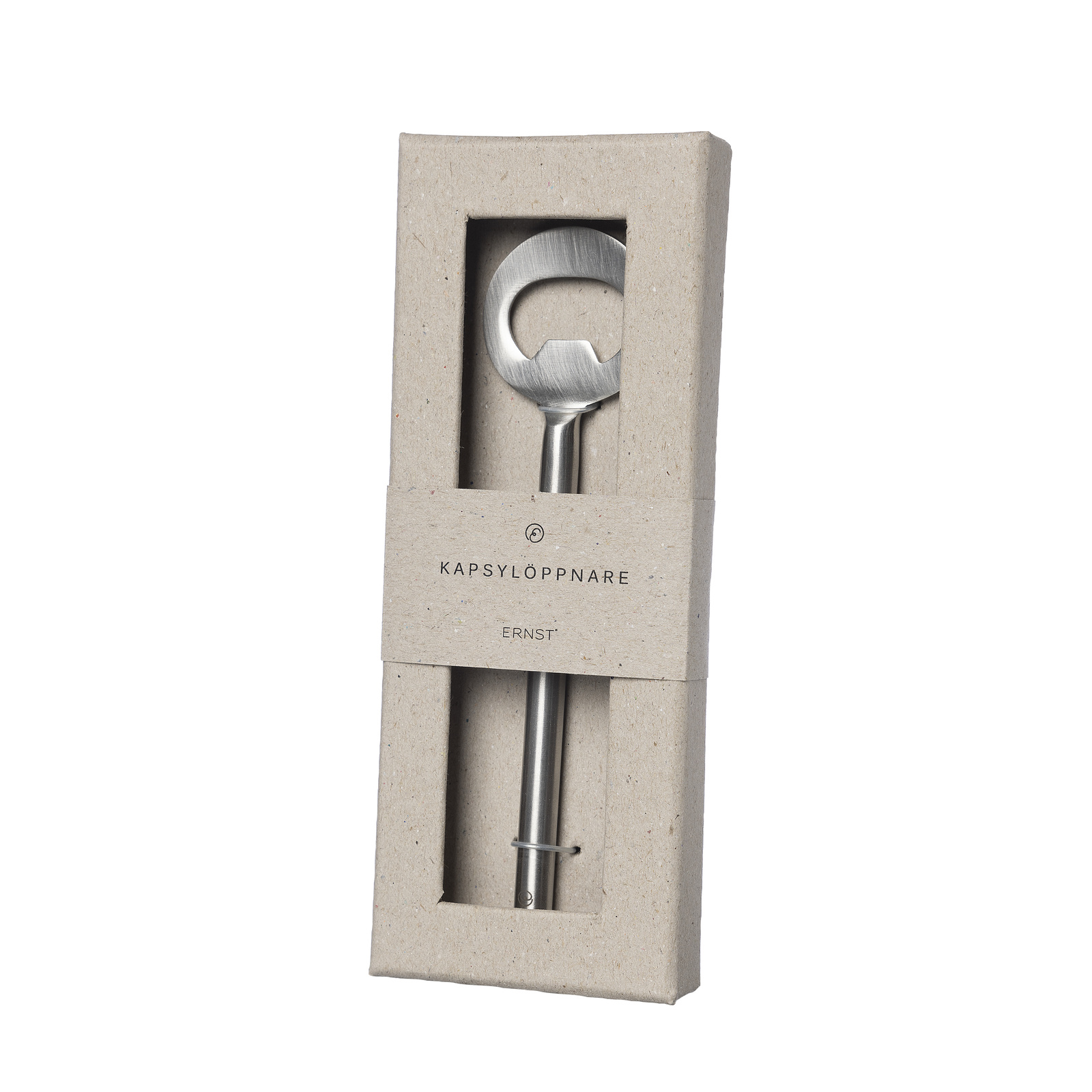Elegant bottle opener in stainless steel. Delivered in a nice gift box. There are also coffee measures, cork screw, butter knives, spoons, cheese knife set and cutlery in the same series.
