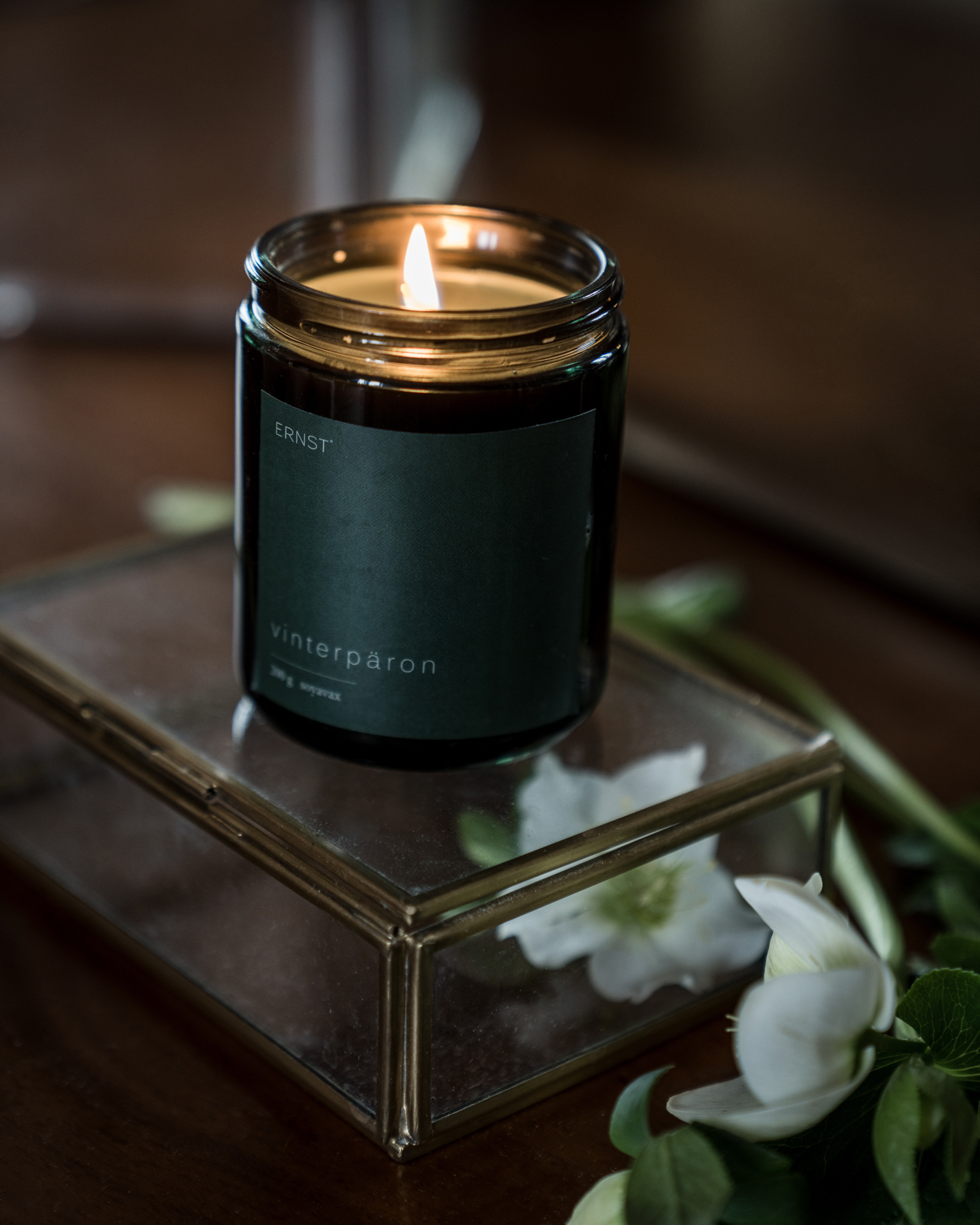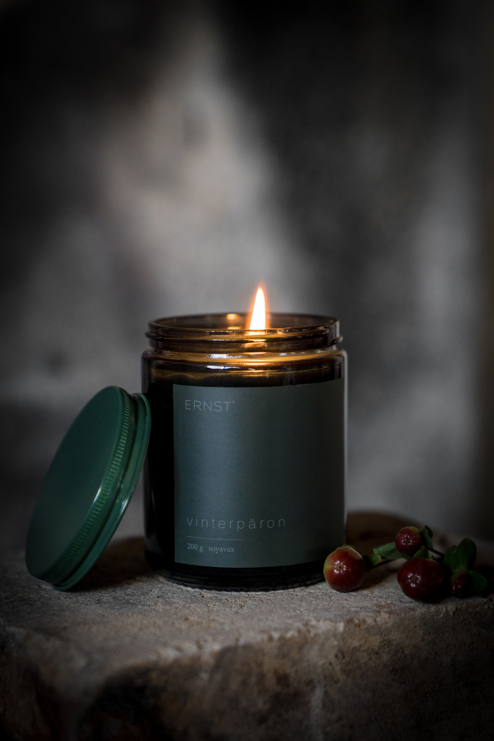 ERNST doftljus i glasburk ger en underbar doft av vinterpäron .Perfekt gåva till någon du tycker om.