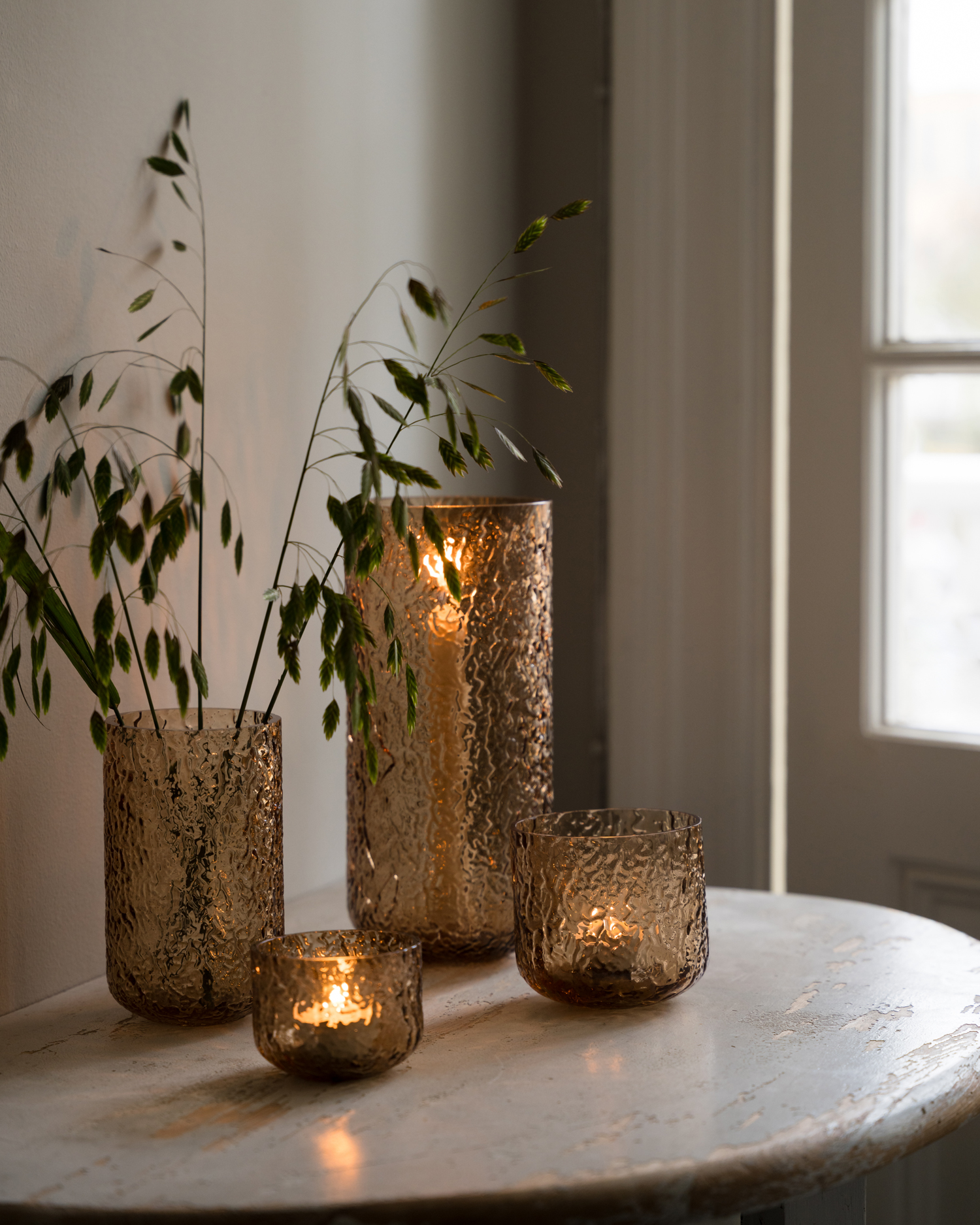 LANSERING 19/1 2026 ERNST glaslykta i bärnstensfärgat glas – en vacker detalj som lyser upp ditt hem. Låt den sprida sin rofyllda atmosfär ensam eller kombinera med andra lyktor i samma serie för att skapa en harmonisk helhet. En enkel men kraftfull detalj som ger liv och värme till ditt hem.