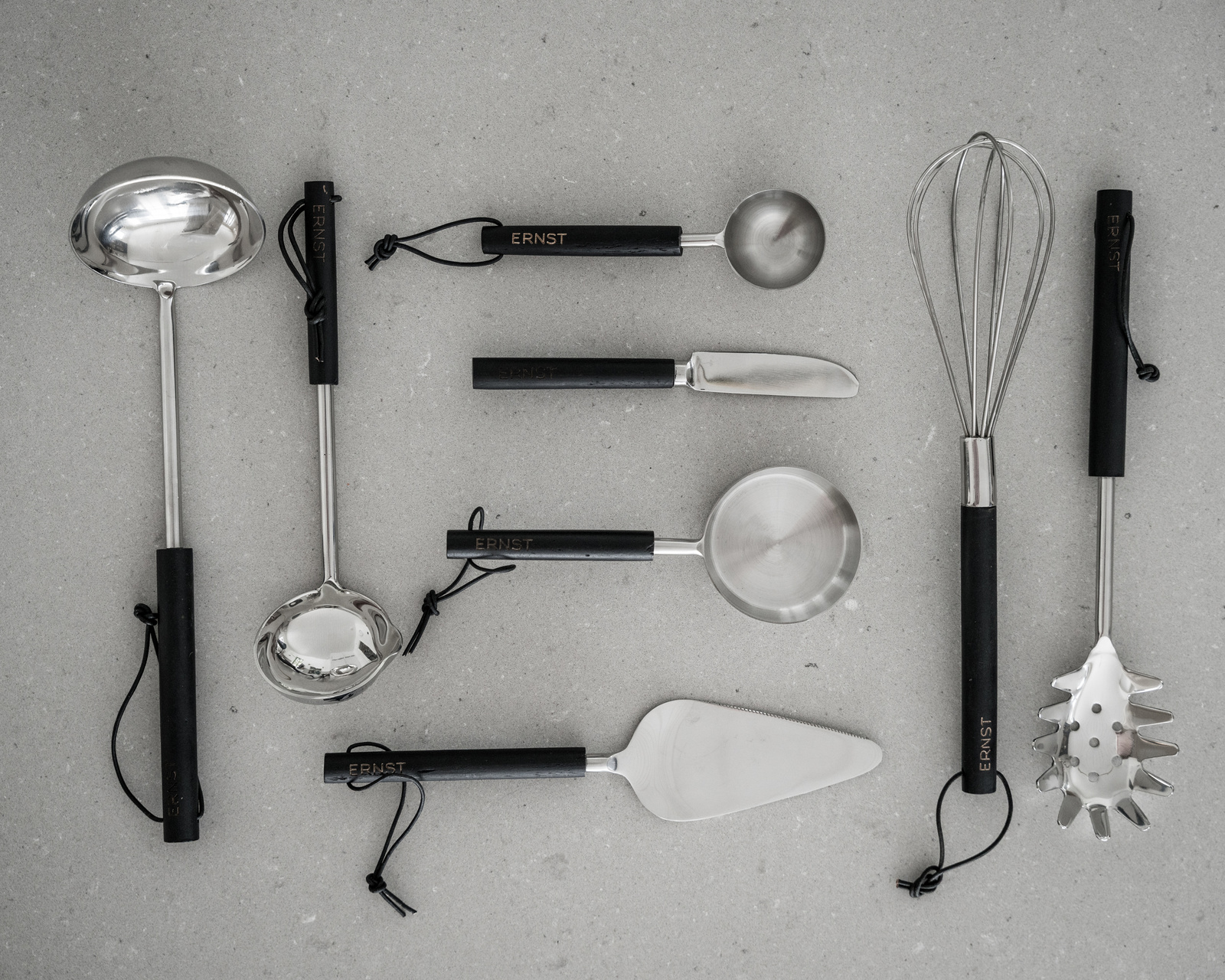 Servera såsen med ERNST såsslev i metall och fint handtag i trä. Läderbandet är en trevlig detalj men också perfekt när man vill hänga köksredskapen synliga i köket.