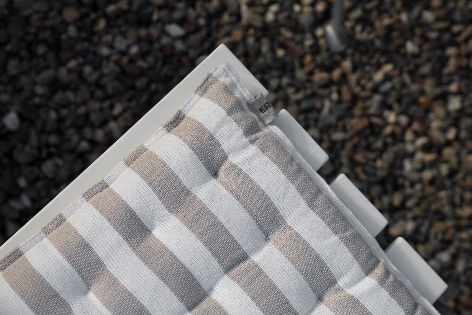 Med ERNST sittdyna får utemöblerna både en extra dos komfort och ett vackert lyft. Tillverkad i mjuk 100% bomull är den lika självklar på bänken som på stolen. En enkel detalj som gör varje sittplats lite mer inbjudande.