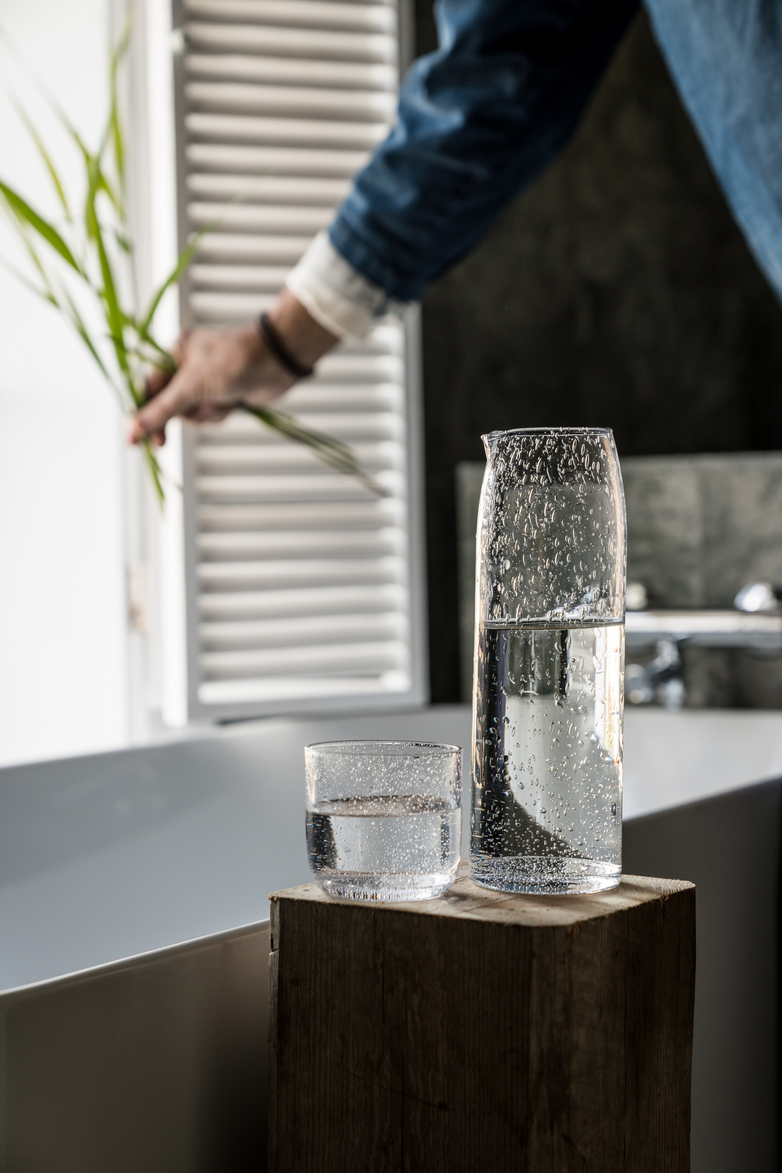 Die Glaskaraffe von ERNST aus Schweden ist eine Hommage an das Stilvolle und Schlichte, mit kleinen dekorativen Bläschen, die das Glas zum Leben erwecken. Mit seiner geraden, länglichen Form und Transparenz passt er zu gesunden Getränken auf dem Esstisch genauso gut wie zu ein paar schönen Schnittblumen. Eine Karaffe sowohl für den Alltag als auch für Partys, die jedem Ambiente das gewisse Extra verleiht.